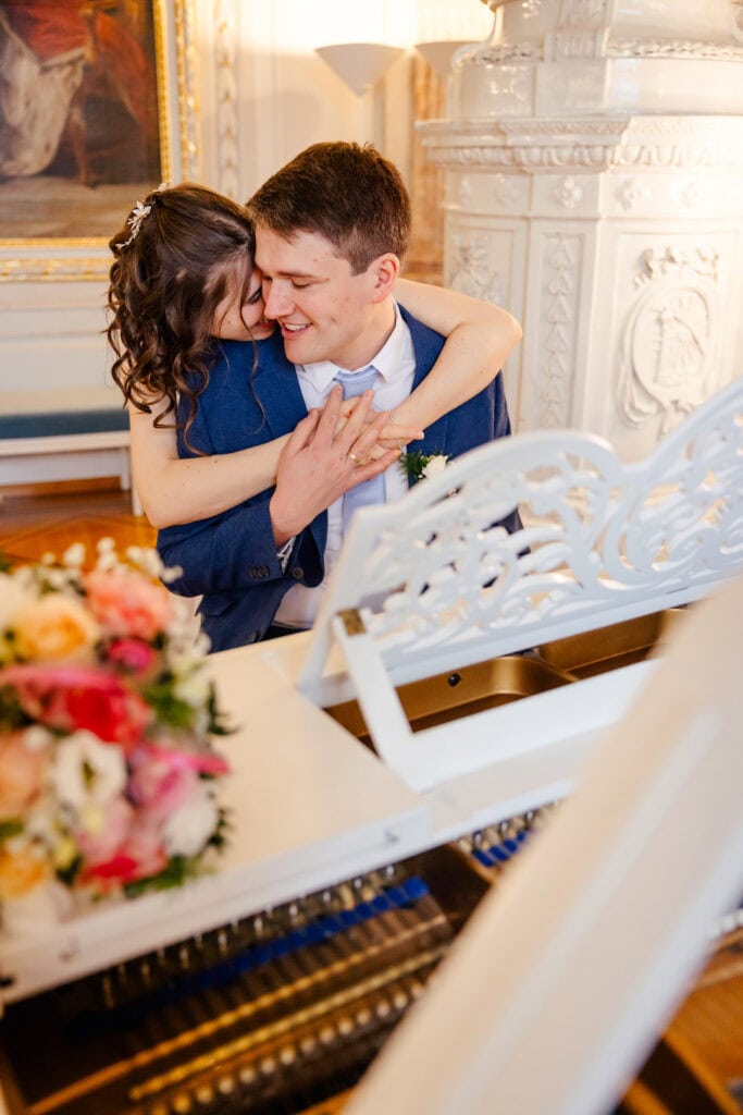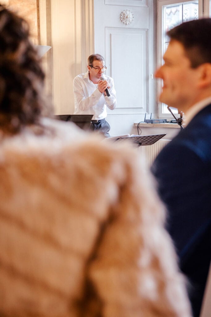 Die standesamtliche Trauung war voller Wärme und echter Emotionen. Draußen warteten Freunde und Familie, die ein liebevolles Spalier bildeten und das Paar mit strahlenden Gesichtern empfingen. Es war einer dieser Momente, in denen man spürt, wie viel Herz in einer Verbindung steckt.